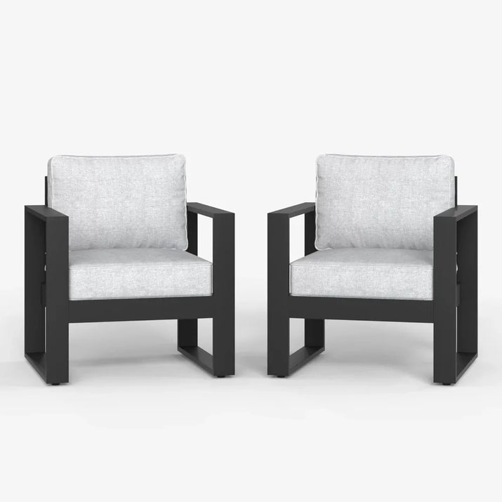 Outdoor Patio Aluminum Chair, Metal Modern Armchair Set of 2 with Washable Thick Cushions