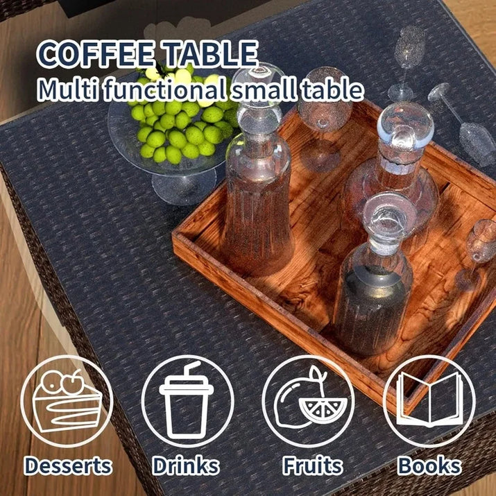 Outdoor Patio Furniture Set, Rattan Sectional Sofa, Conversation Set with Waterproof Cushion and Coffee Table