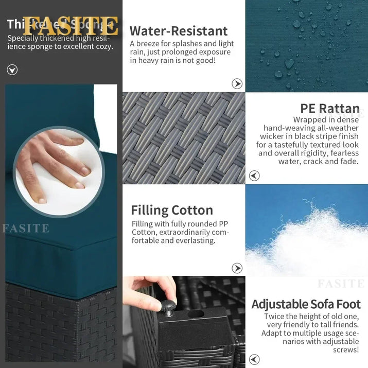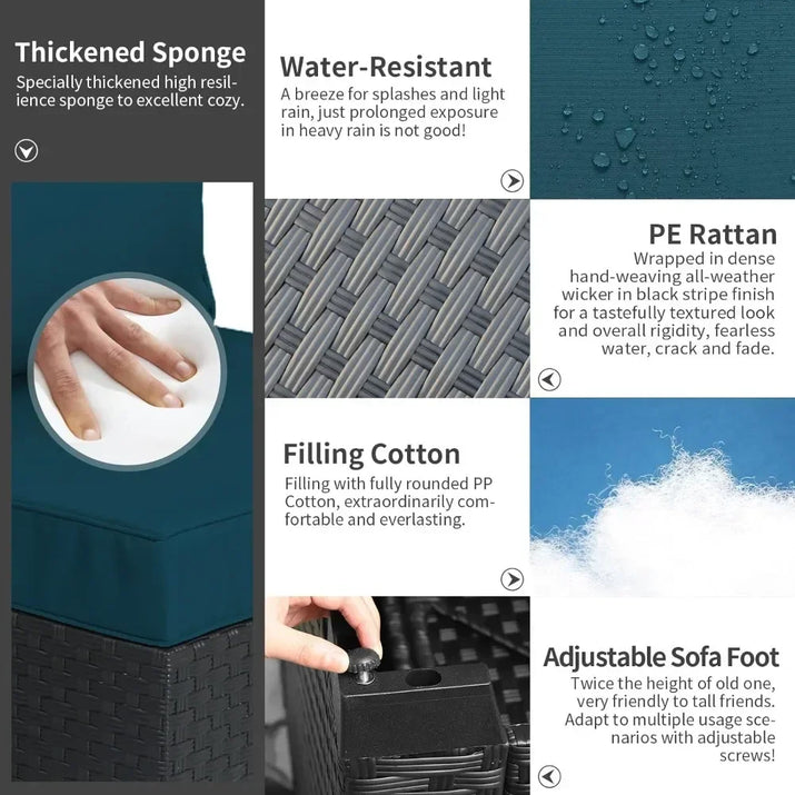 Patio Furniture Sets, 6 Pieces Couch Outdoor Chairs Coffee Table Peacock Blue Anti-Slip Cushions, Outdoor Furniture Sets