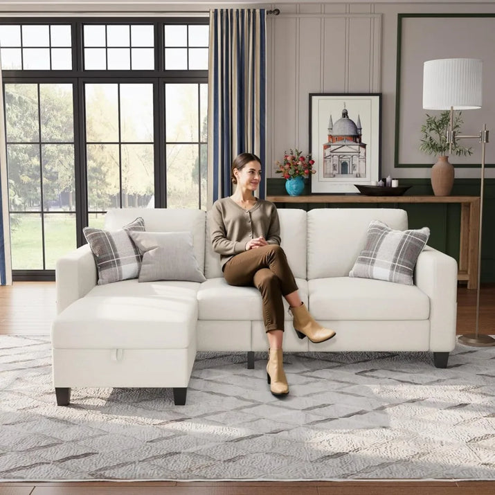 Pet-Friendly 78 L-Shaped Modular Sofa with Washable Cover and Convertible Three-Seater for Living Room