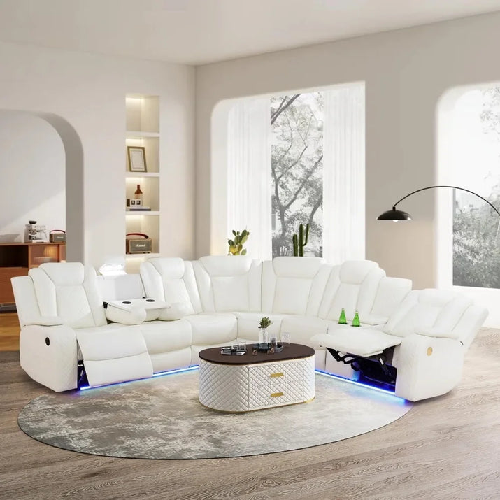 Power Reclining Sectional Sofa USB Chargers and Storage Console, Leather Recliner Sofa for Living Room Furniture Set