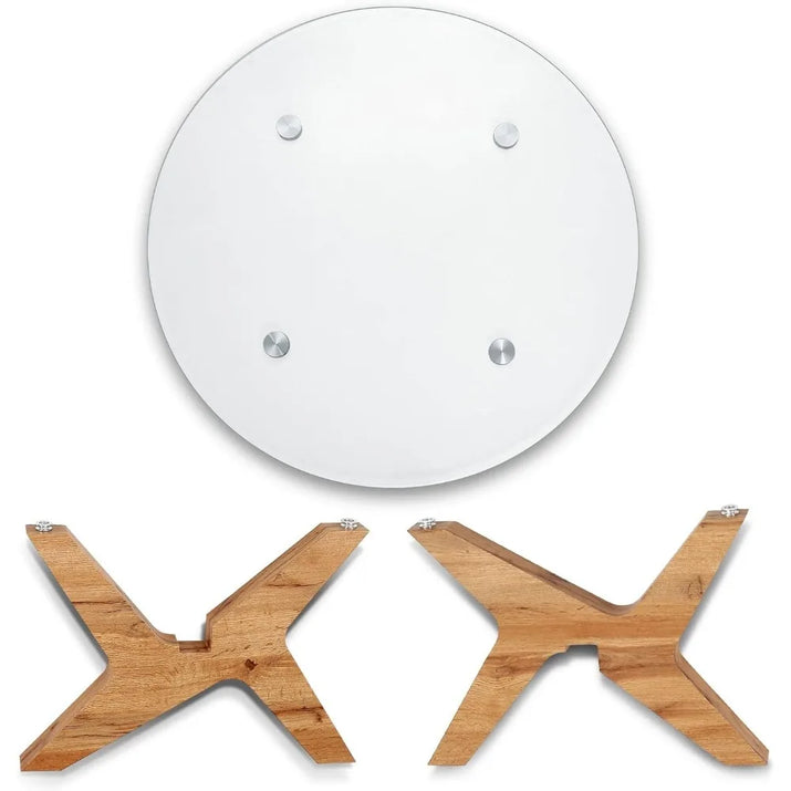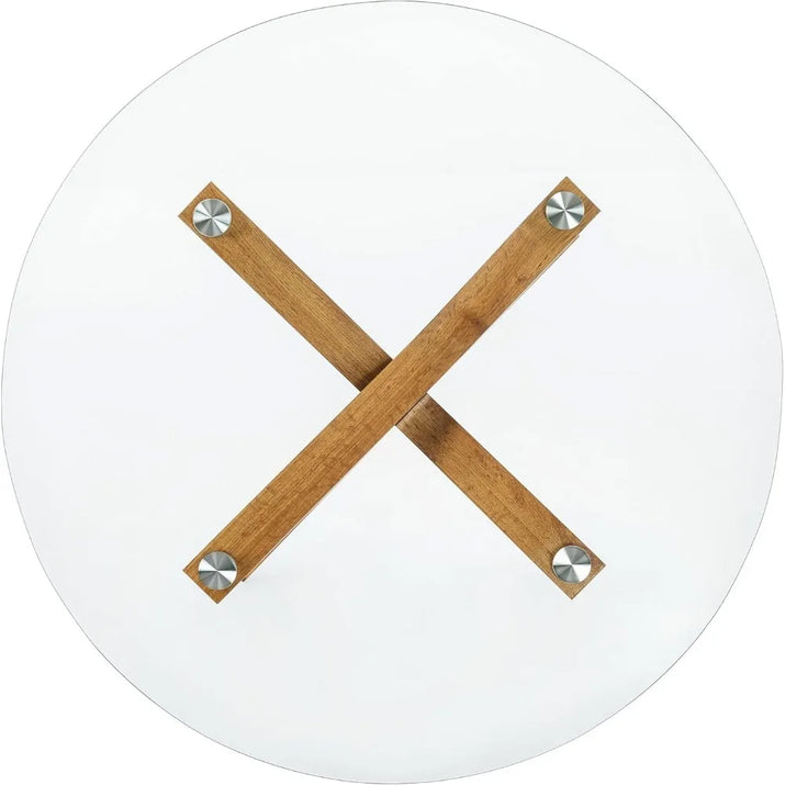 Round Glass Coffee Table, 31.5 in Clear Accent Table Cocktail Table with MDF Leg and Tempered Glass Top