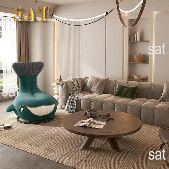 #Shark Model Living Room Sofa Chair Fabric Upholstered Velvet Children's Swivel Lounge Chair