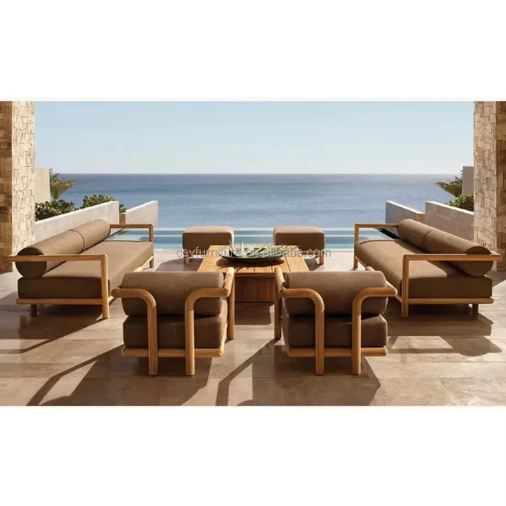 Single Premium Teak Outdoor Sofa Comfortable Stylish Modern Design Natural Color