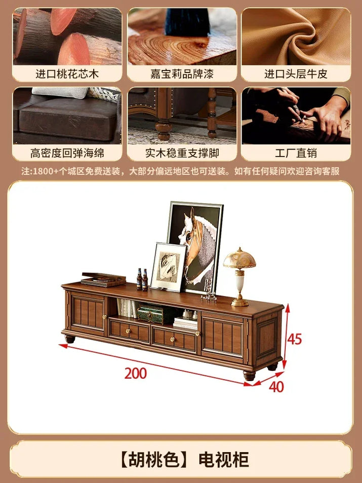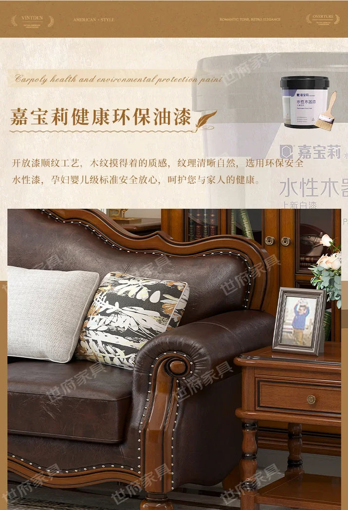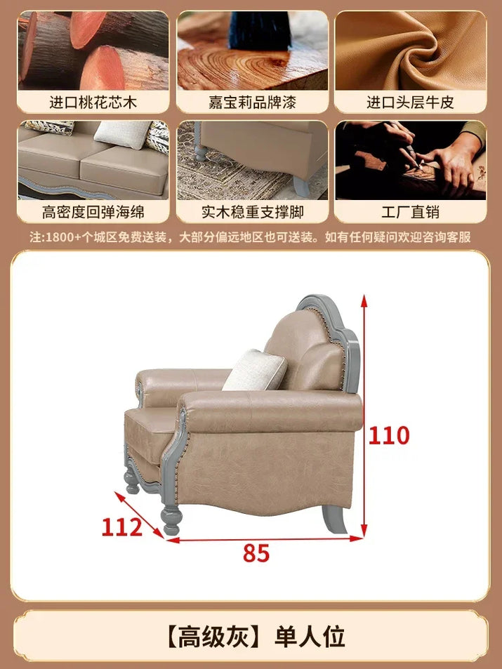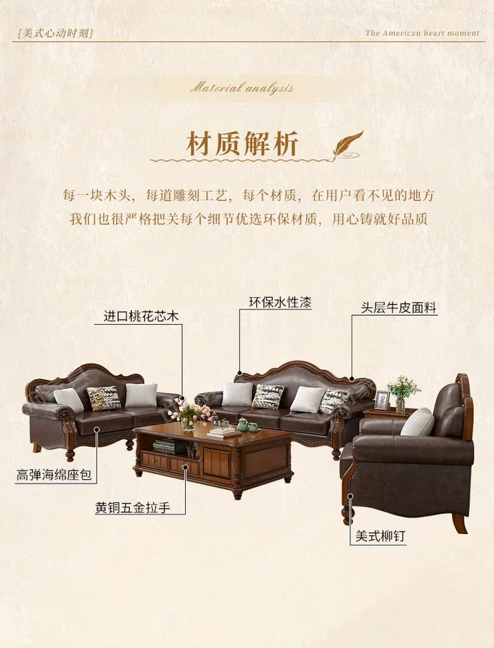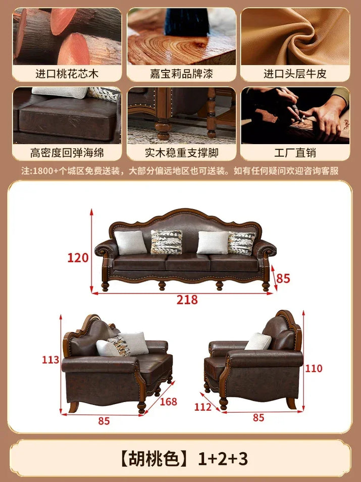 Solid wood leather sofa combination living room simple whole house furniture