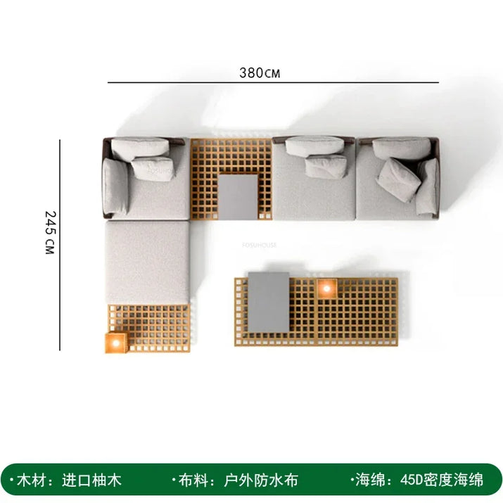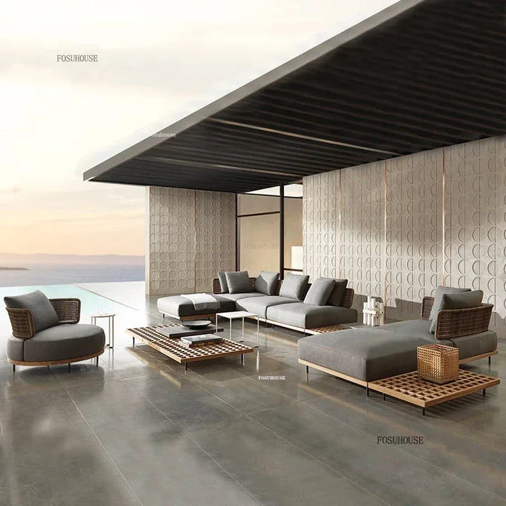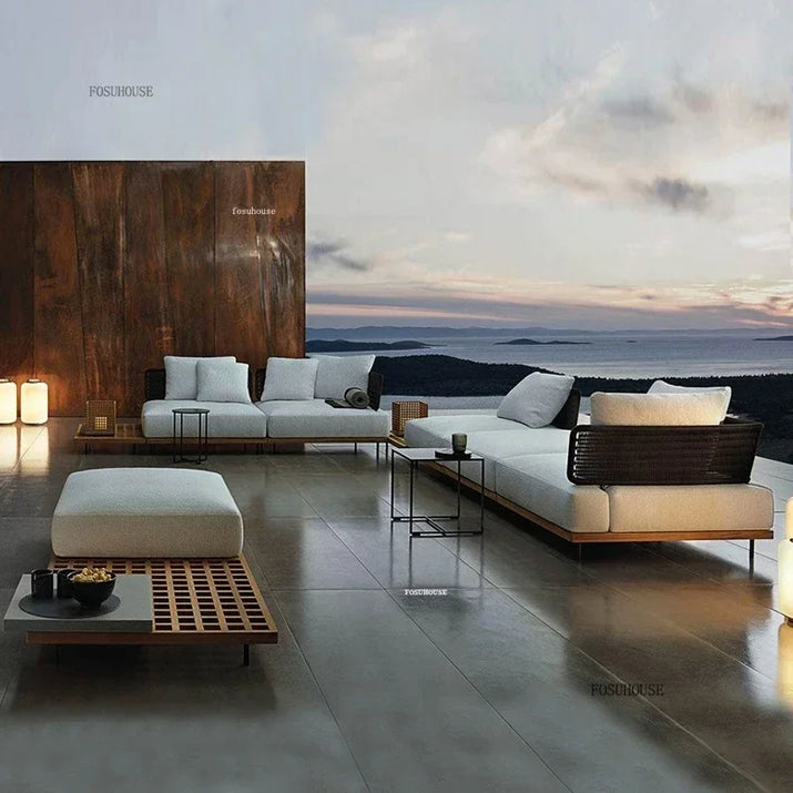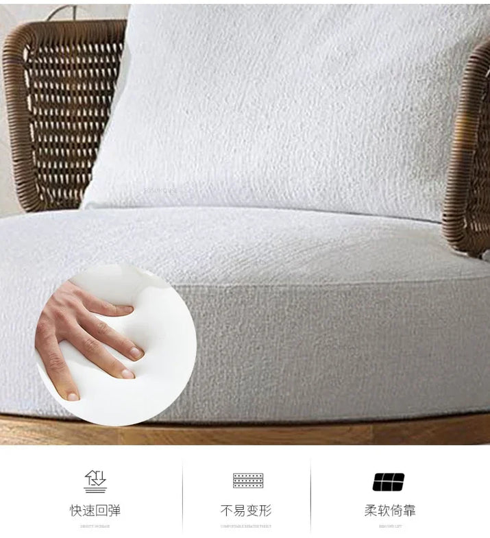 Solid Wood Rattan Sofa Home Leisure Patio Furniture B&B Villa Nordic Sofa Chair Combination Luxury Outdoor Garden Furniture Sets