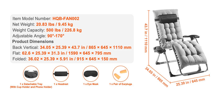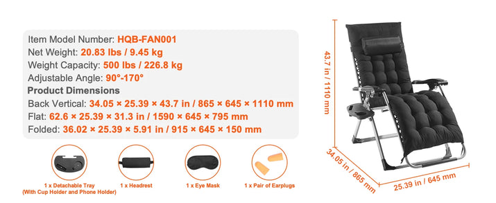 SucceBuy Zero Gravity Chair Zero Gravity Recliner Lounge Chair Adjustable Anti Gravity Chair with Cushion Footrest and Cupholder