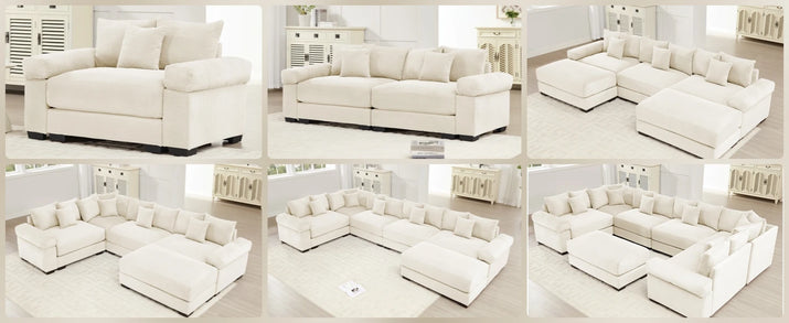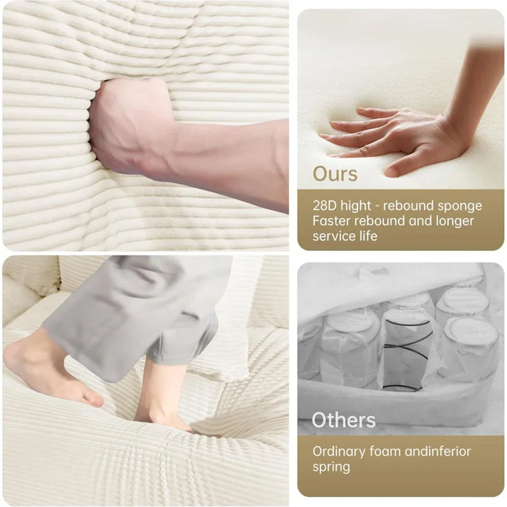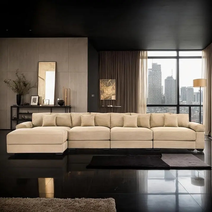 (UUX)155" Oversized Modular Sofa, Corduroy Cloud Couch Sectional with L Shape Chaise and 12 Throw Pillows, Upholste UQ