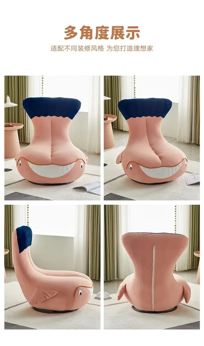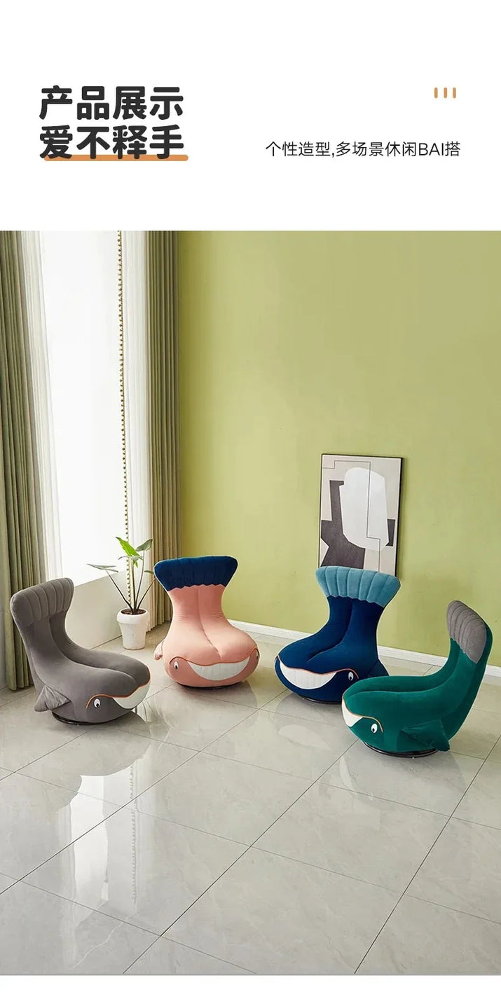 Whale Lazy Sofa Leisure Chair Flannel Rotatable Cute Shark Sofa Single Seat Chair