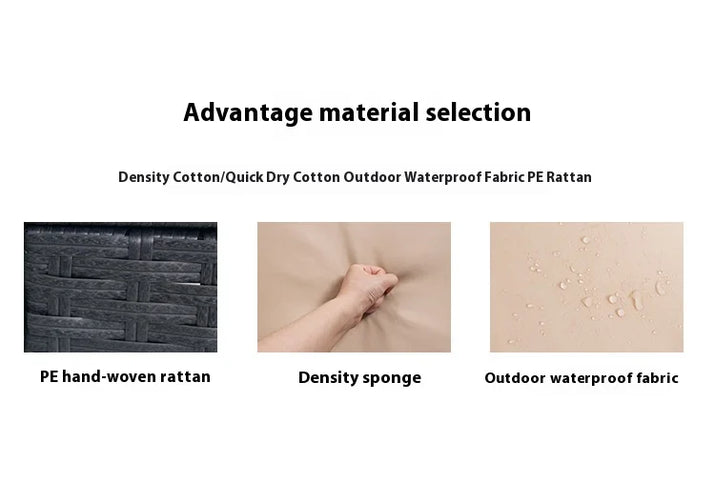 Answer 1: The patio furniture set is crafted from premium wicker rattan, which is designed to withstand various weather conditions, ensuring durability and easy maintenance over the years.
